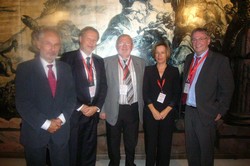 (von links:) Rafael Ribò (Volksanwalt von Catalunya), Mats Melin (Schwedischer Ombudsman), Tom Frowley (Irischer Ombudsman), Burgi Volgger und Guido Schürmanns (Belgischer Ombudsman)