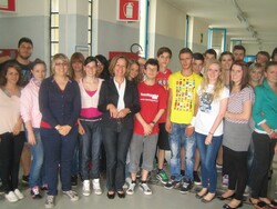 Volksanwältin Volgger mit den Schülerinnen und Schülern des Sozialwissenschaftlichen Gymnasiums und der Fachoberschule für Tourismus in Bozen